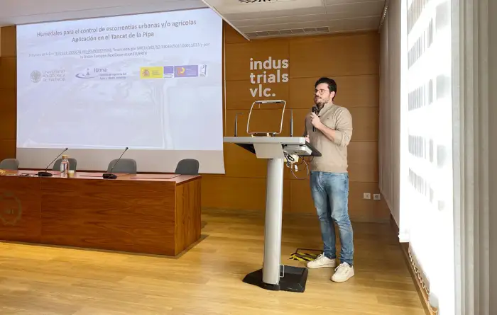 Adrián Martínez Biosca (SBNs) realizó una de las presentaciones sobre el potencial de los humedales para el control de escorrentías